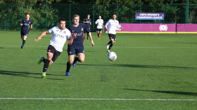It took USW no more than 30 seconds to create their first chance. Lloyd Davies charged down a clearance with the rebound falling kindly to him. Through one-on-one with Met ‘keeper Alex Lang, his shot was easily blocked.