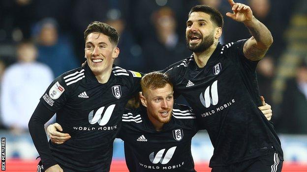 Fulham celebrate a goal against Swansea. Pic: BBC