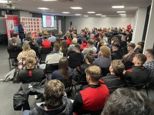 Warburton captivated a room of aspiring USW athletes and USW and Welsh Government representatives as he told stories of his success, outlining the reward of hard work and determination.